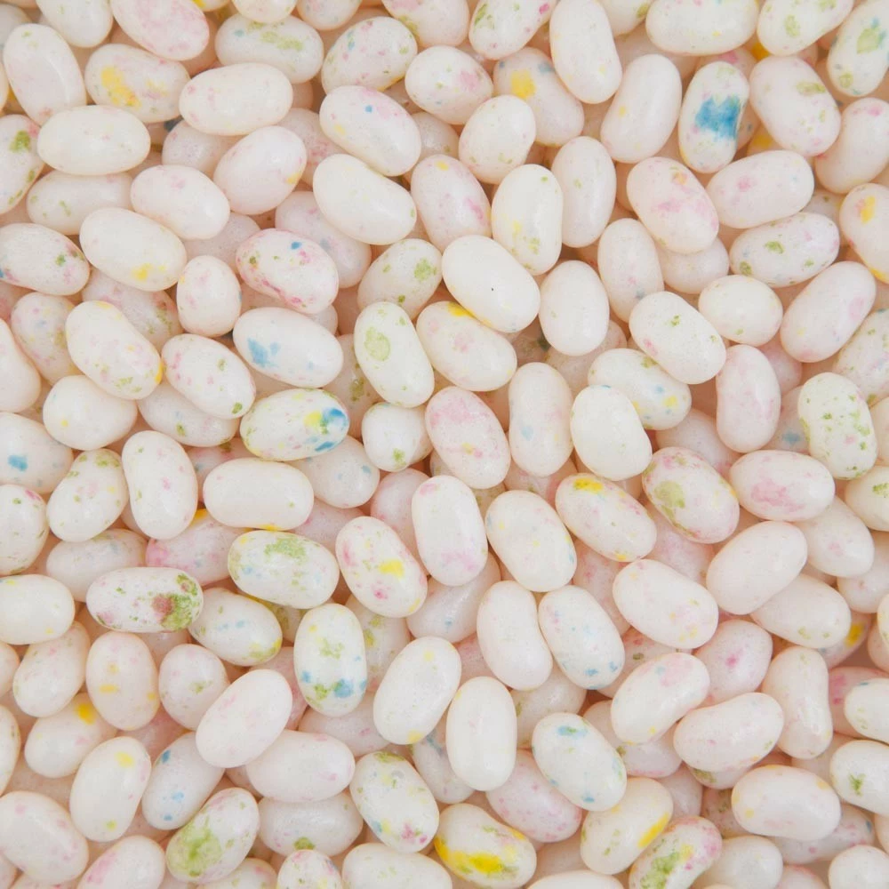 Tutti Frutti actually means “all fruits” in Italian. The phrase was a popular song in 1955 sung by Little Richard. At the time, it was considered the first ever hard-driving rock ‘n roll song. The key lyric: “A-wop-bom-a-loo-mop-a-lomp-bom-bom!!” became rock ‘n roll legend. Tutti Frutti Jelly Beans pack a pretty legendary punch all of their own. They are a delicate pale pink, but speckled with colours: Lemon, lime, raspberry, melon, banana, pineapple, mango, blueberry. You get the picture. Now get the jelly beans!