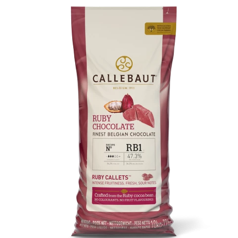 A unique and new fruity experience, Callebaut Ruby is the newest chocolate available. Whether you’re a seasoned pastry chef or a master chocolatier, this 10kg bag of Ruby callets will supply you with endless flavours.