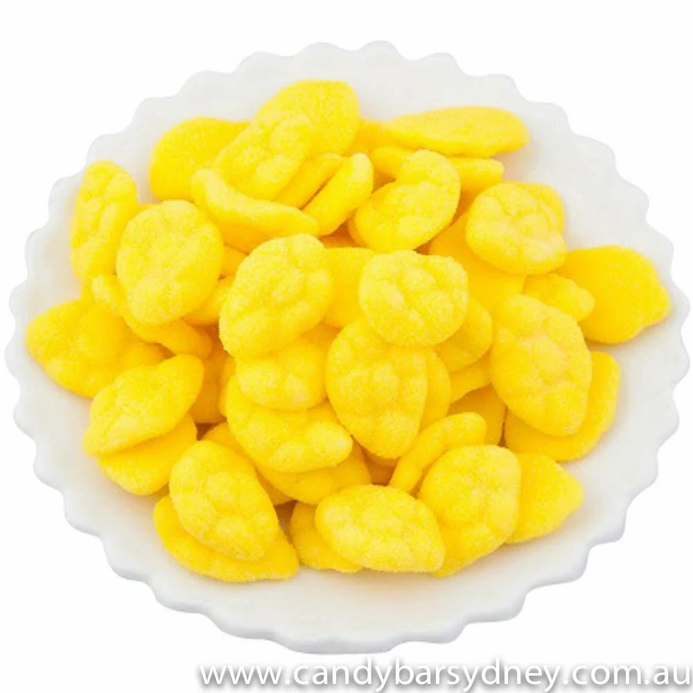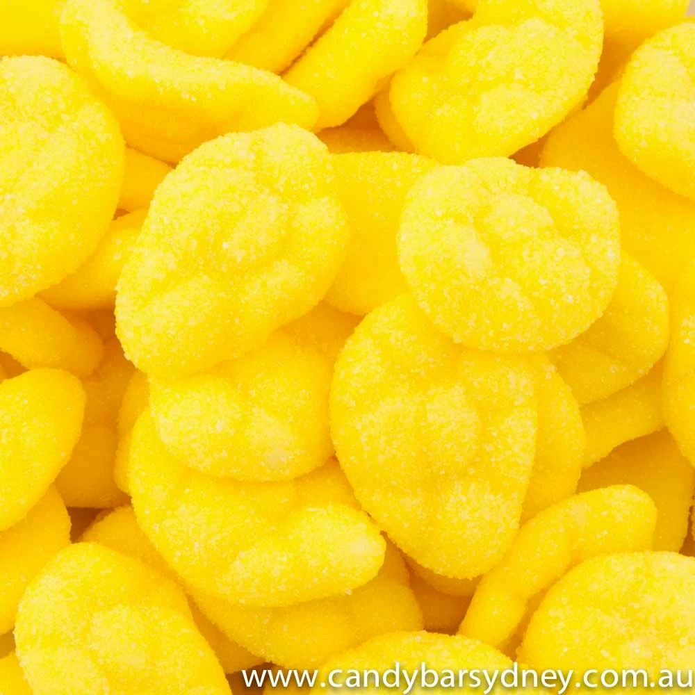 Get your head out of the clouds. Or should that be Yellow Banana Clouds. Such yellowy, pillowy, sugary chewy sweetness should be shared around. Could you really eat 1kg of these delicious, sunny discs of gorgeousness by yourself? That could be a difficult question to answer because they’re so tempting, so alluring, you could well find yourself under a cloud of suspicion when everyone comes looking for theirs, and instead they find nothing but a sprinkle of sugar at the bottom of the bag. Caught yellow handed!