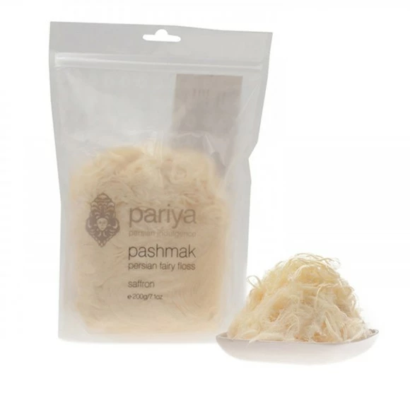 Unlike regular fairy floss, Persian Fairy Floss is much more durable after it has been opened. Designed to be used on top of desserts, it will not shrivel as quickly as regular fairy floss. However we do recommend using the Pashmak within a few days of opening the package.
